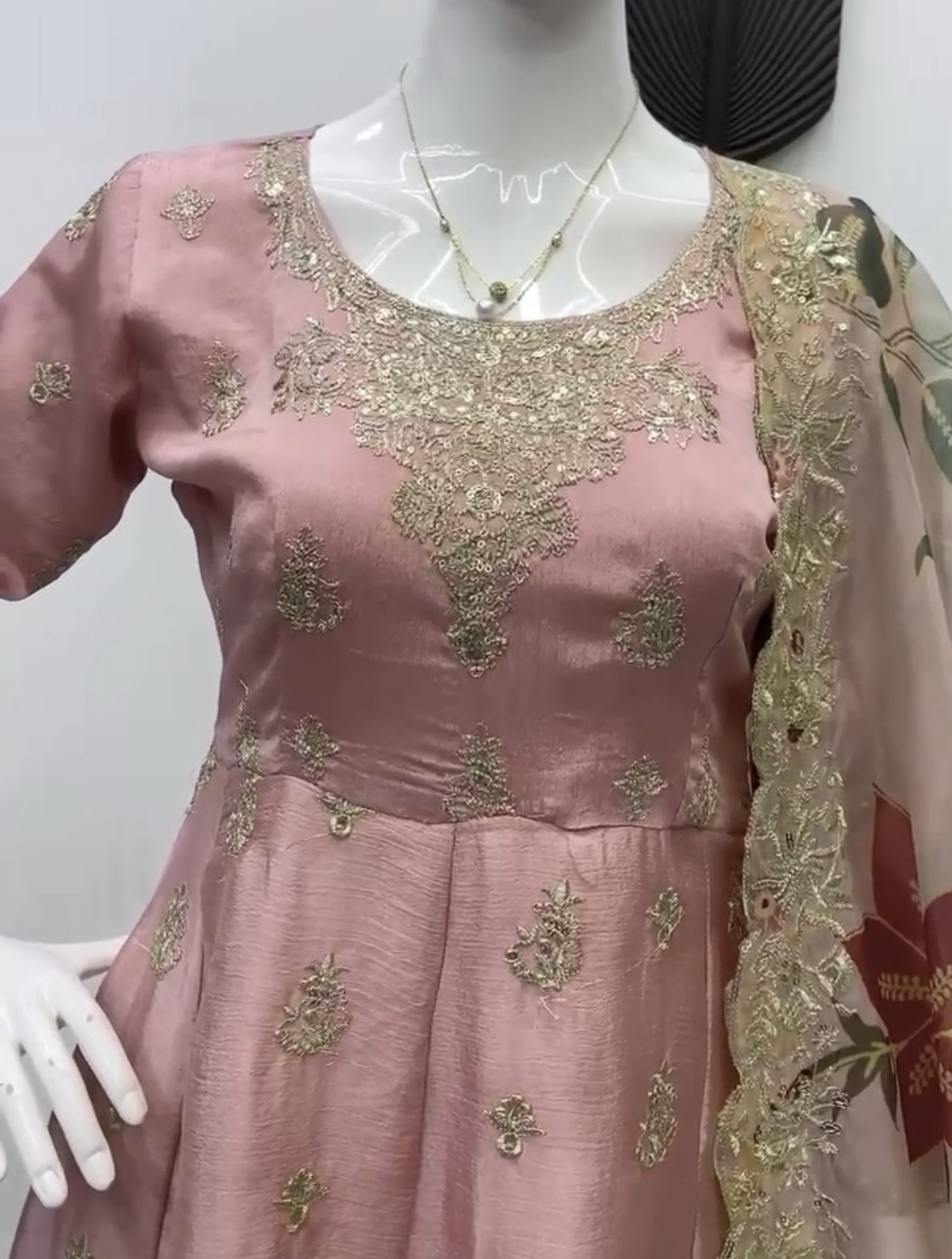 This graceful ensemble is crafted from flowy Chinon Silk fabric in a soft, ethereal Blush Pink hue, making it perfect for daytime events and formal gatherings.
