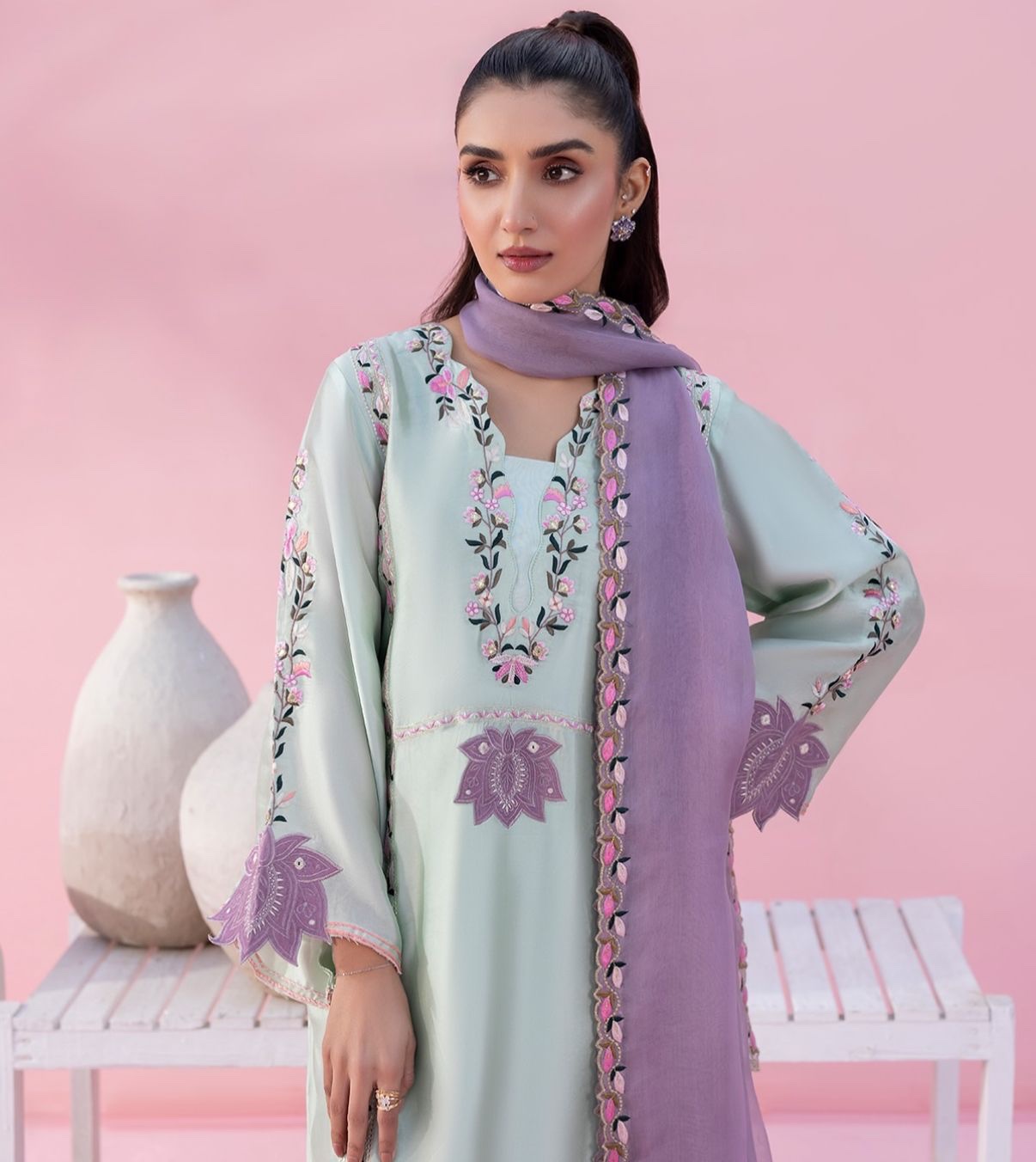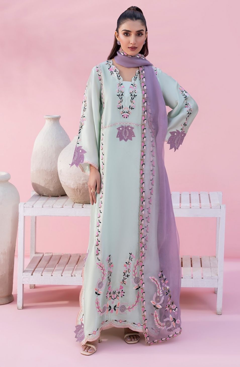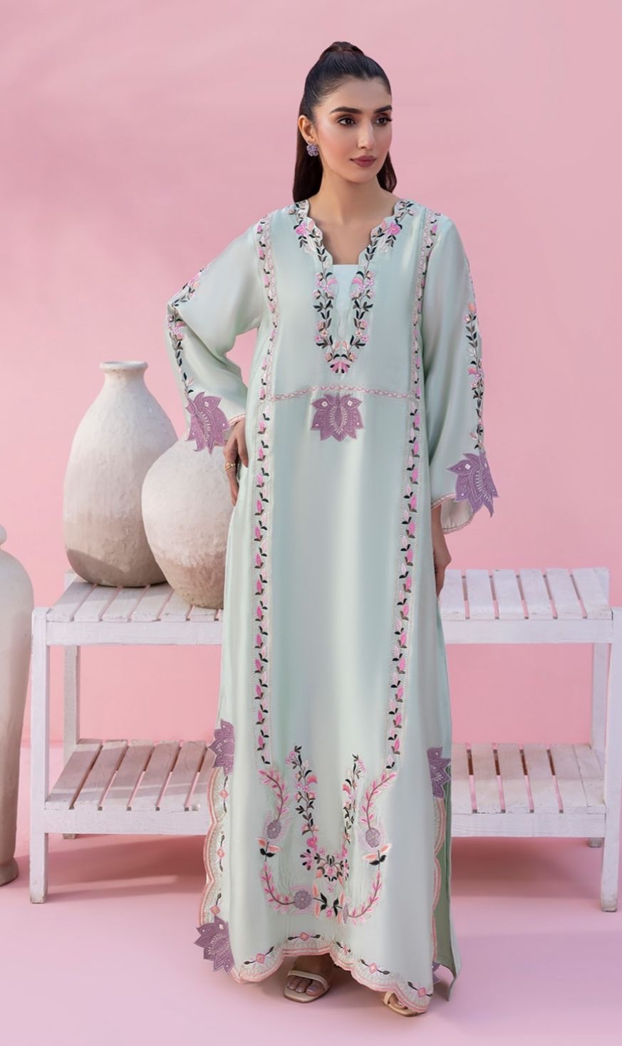Pakistani long kaftan suit set