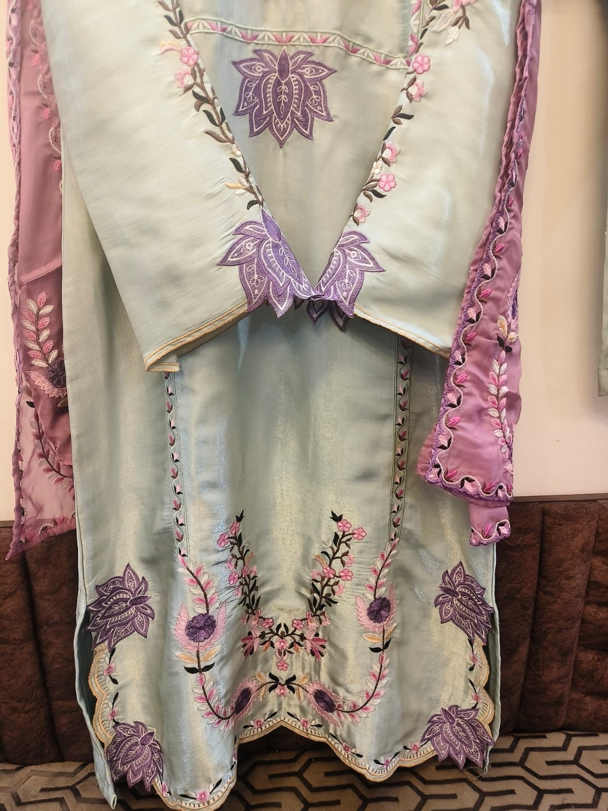 sheesha silk with beautiful embroidery and cutwork
