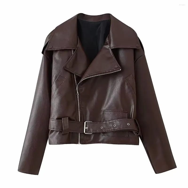 Elevate your winter style with this chic chocolate brown faux leather biker jacket. Designed with an asymmetrical zip closure, wide lapel collars, and an adjustable waist belt, it offers a flattering structured fit. The smooth, premium faux leather finish adds an effortlessly stylish edge to any outfit.