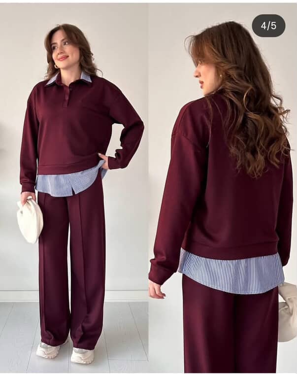 Effortlessly chic and comfortable, this coord set is a perfect blend of casual and classy. It features a relaxed-fit top with a shirt-style layered hem and collar detailing in striped blue for a smart contrast. Paired with wide-leg trousers, the look exudes minimal elegance and modern sophistication. Ideal for work, travel, or brunch outings, this ensemble ensures both comfort and style all day long.