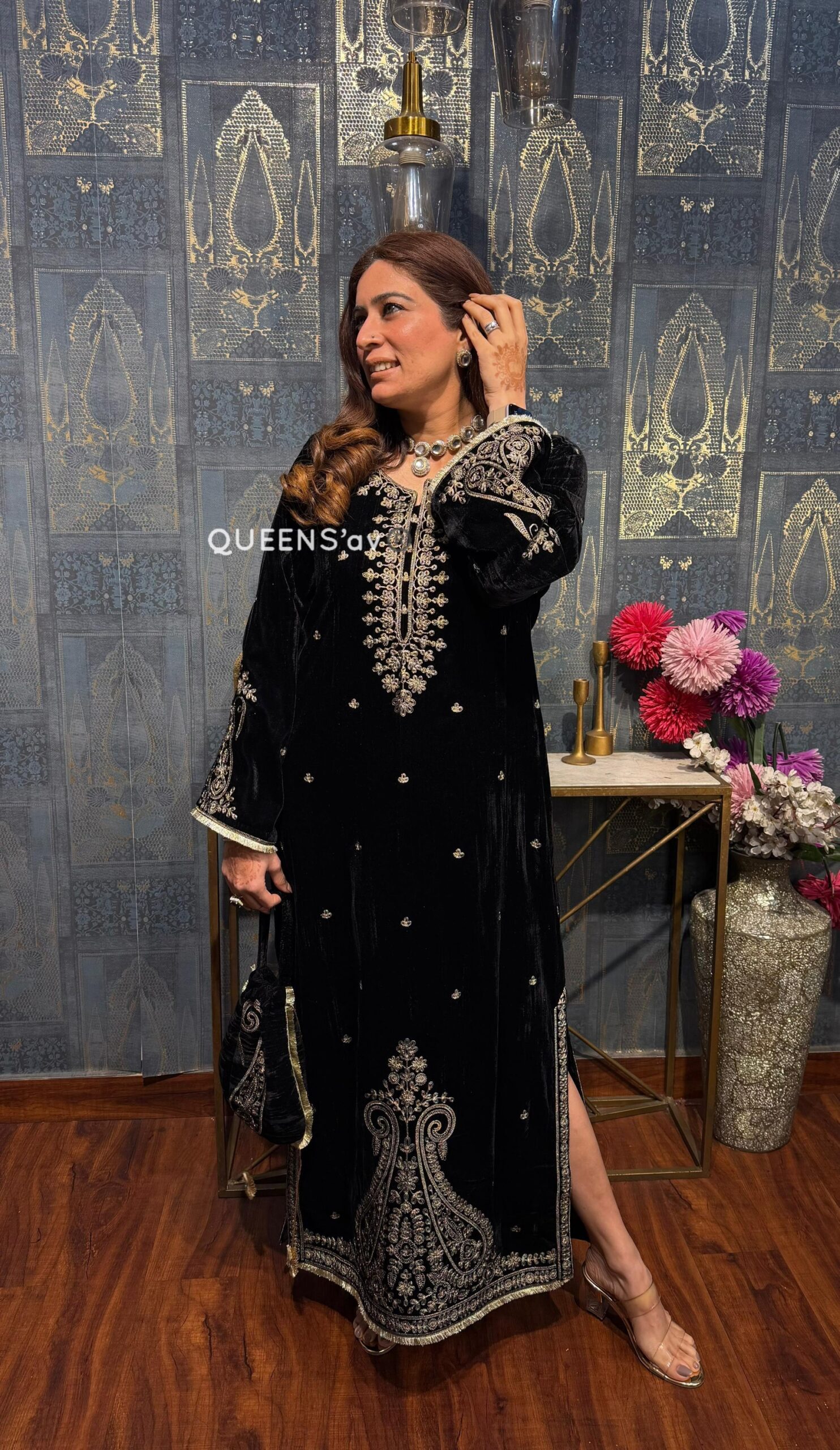 VELVET SLIT DRESS